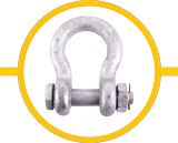 Bolt type anchor shackles (also called bow shackles) are used for side-loading or multiple sling-leg connections. They are often used for lifting or rigging applications. Anchor shackles offer added security through a combination of a nut and a bolt to secure the pin in place.